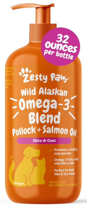 I’ve been giving my dogs the Zesty Paws Omega 3 Blend Wild Alaskan Fish Oil, and it’s made such a difference. This blend is packed with wild-caught Alaskan pollock oil and rich in EPA & DHA fatty acids, which are essential for supporting skin health and reducing dryness, itching, and irritation that often come with allergies. It also has added Omega-6 and Omega-9 from borage oil for even more support.